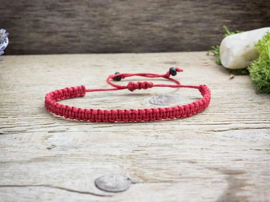Egyszerű piros makramé karkötő