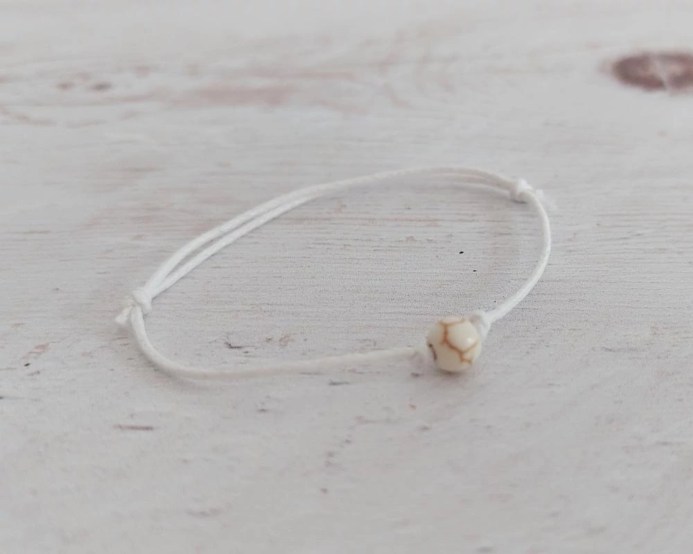 Fehér pöttöm karkötő fehér színű 6mm-es howlit gyönggyel