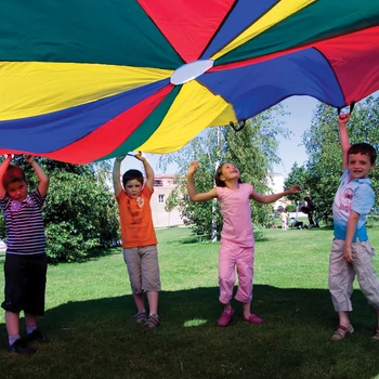Óriás ejtőernyő Amaya 3,25 m Kiváló minőségű nylon ejtőernyő nagyteljesítményű fogantyúval. A hagyományos modell négy színű panelből áll (zöld, sárga, piros, kék). Elősegíti kisebb csoportok koordinációját. A könnyebb megtartás érdekében az ejtőernyő 12 db kapaszkodóval felszerelt. Az ejtőernyő átmérője: 3,25 m. |