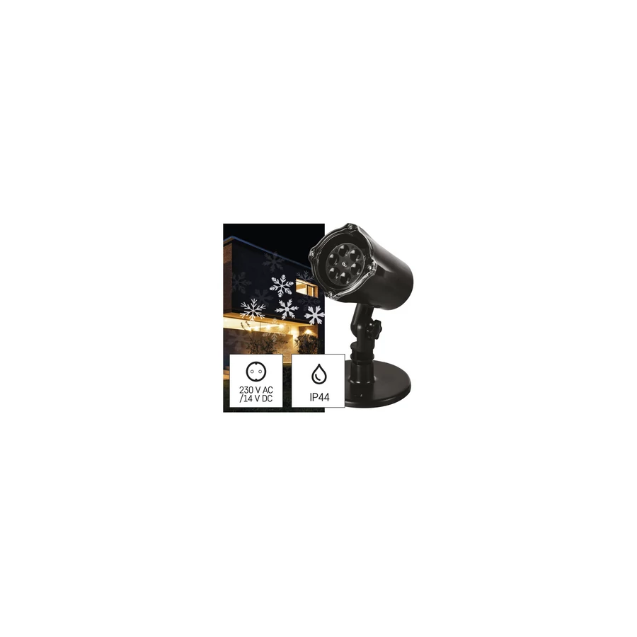 termék: projektor, technológia: LED, fény színe: hideg fehér, időzítő: nem, távvezérlő: nem, minta: hópelyhek, funkció: forgó fény, használat: kültéri és beltéri, tápellátás típusa: AC (hálózati) adapter, tápvezeték hossza: 3 m, fogyasztás: 3,6 W, bemeneti feszültség: 230 V~, kimeneti feszültség: 14 V DC, védettség: IP44, élettartam: 10 000 óra, anyag: műanyag, garancia-időszak: 2 év, értékesítési csomagolás: 1 db, doboz
