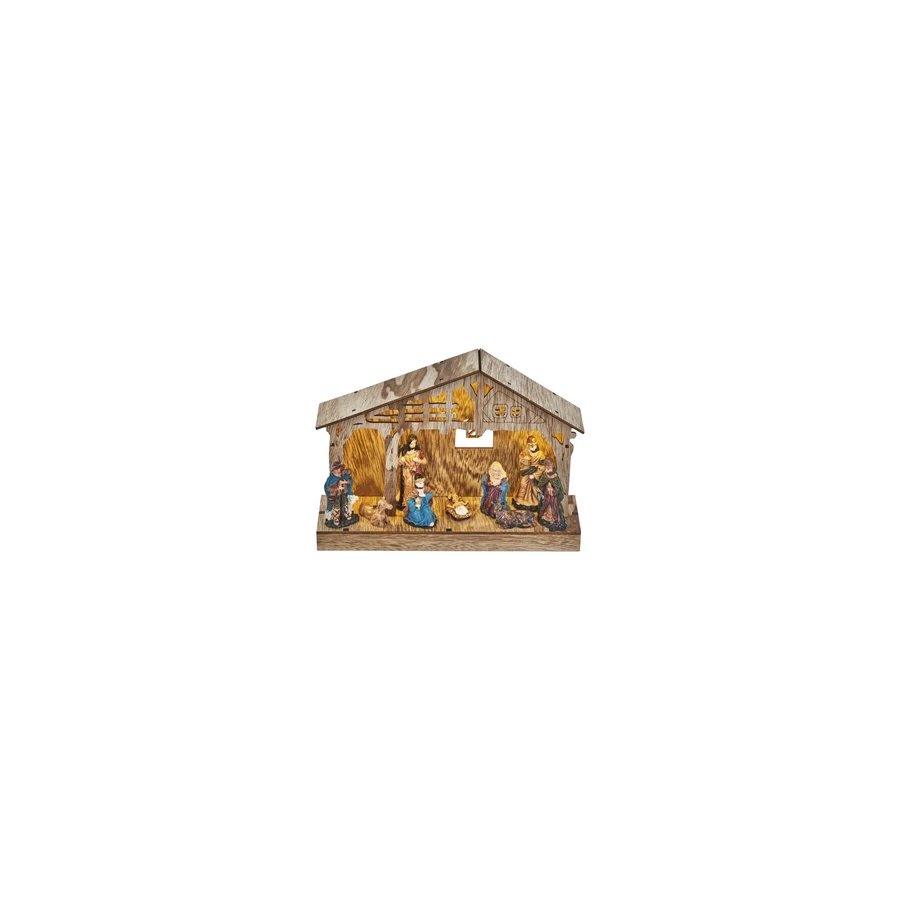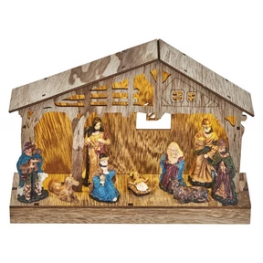 termék: betlehem, fény színe: meleg fehér, méretek: 26 × 19 cm, használat: beltéri, időzítő, távvezérlő: nem, tápellátás típusa: elem (3× AA), fényforrás: LED, LED-ek száma: 5, fogyasztás: 0,36 W, kimeneti feszültség: 4,5 V DC, védettség: IP20, élettartam: 10 000 óra, anyag: fa, garancia-időszak: 2 év, értékesítési csomagolás: 1 db, doboz