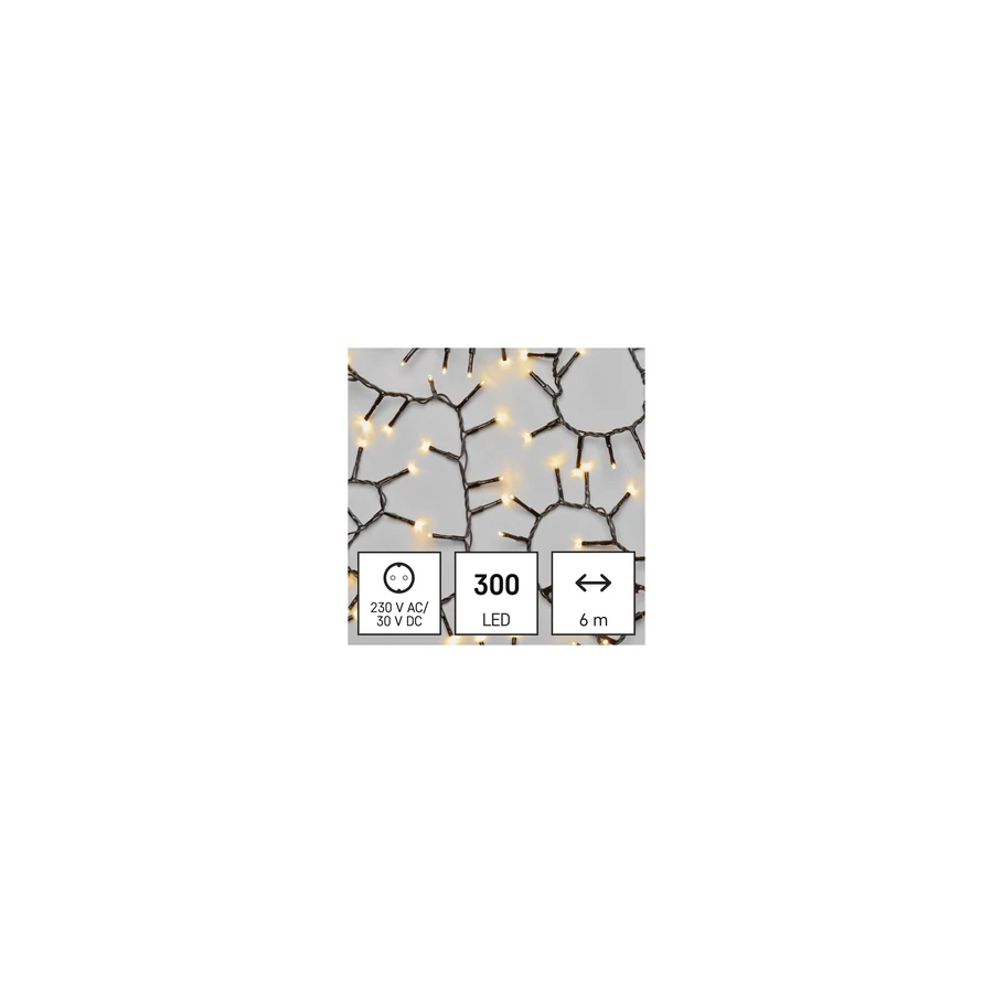 termék: sündisznó, fény színe: meleg fehér, méretek: 6 m, használat: kültéri és beltéri, időzítő, távvezérlő: nem, funkció: világít, tápellátás típusa: AC (hálózati) adapter, forma: klasszikus, LED-ek száma: 300, LED-ek közötti távolság: 2 cm, LED mérete: 3 mm, tápvezeték hossza: 5 m, a fa magasságához: nincs megadva, kábel színe: fekete, fogyasztás: 3,6 W, bemeneti feszültség: 230 V AC, kimeneti feszültség: 30 V DC, csatlakoztatási lehetőség: nem, védettség: IP44, élettartam: 10 000 óra, anyag: PVC, garancia-időszak: 2 év, értékesítési csomagolás: 1 db, doboz